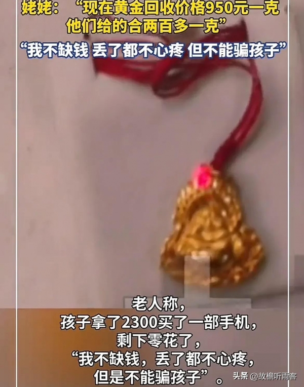 男孩偷卖姥姥13克黄金吊坠仅得4200元